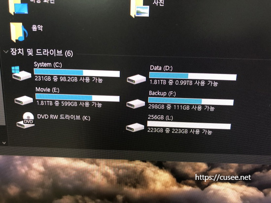 아래와 같이 바로 인식된다. (L드라이브, 인식 후 포맷한 상태)