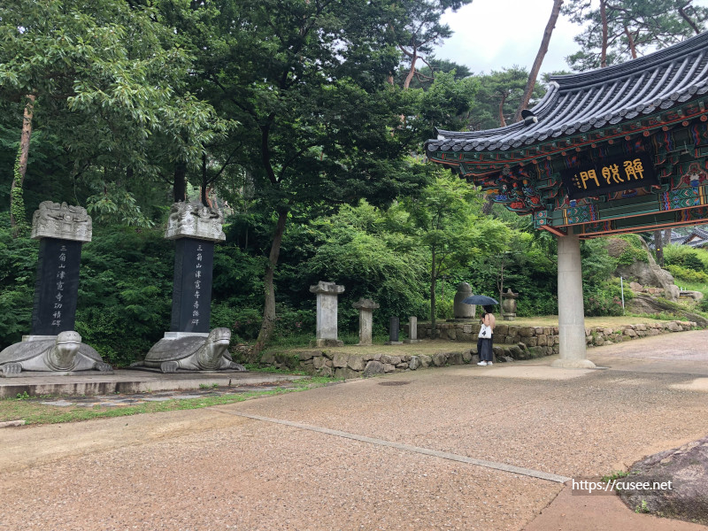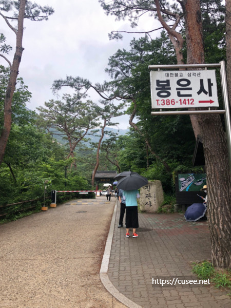 일주문 주변은 신도들을 위한 주차장이다. 입구에서 출입을 관리하는 작은 사무실이 있으니, 사찰과 관계없는 일반 방문객은 주차 불가하다.