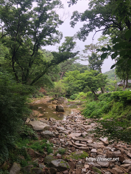 진관사도 유명하지만, 북한산 자락에서 내려오는 계곡도 유명한가 보다. 진관천이 흐르는 이곳은 진관사 계곡이라고도 많이 알려져 있고, 한옥마을 옆으로는 몇 개의 가게가 계곡을 끼고 식당 영업을 하고 있다. 삼천사로 가는 길가에 있는 식당들이다. 물론, 진관사에서 한옥마을로 이어지는 백초월길에는 없다. 계곡을 따라 마실길 근린공원이라는 작은 공원이 하나 있는데, 한여름철 피서 장소로 인기가 높을 것 같다.