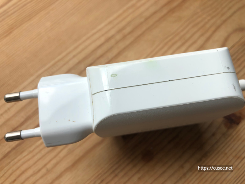 비록 접합면 경계부위는 일부 부셔졌지만, 어뎁터 뚜껑은 제거할 수 있다. 이번에 분해한 삼성노트북 어뎁터는 케이스 내부 부품을 보호하기 위한 장치도 되어 있다. 이 제품은 단선이 문제여서 분해했는데, 결국 제대로 연결해도 충전 전류가 충분히 나오지 않아, 내부 콘덴서와 트랜스 복합문제인 것으로 보여 수리는 포기했다.