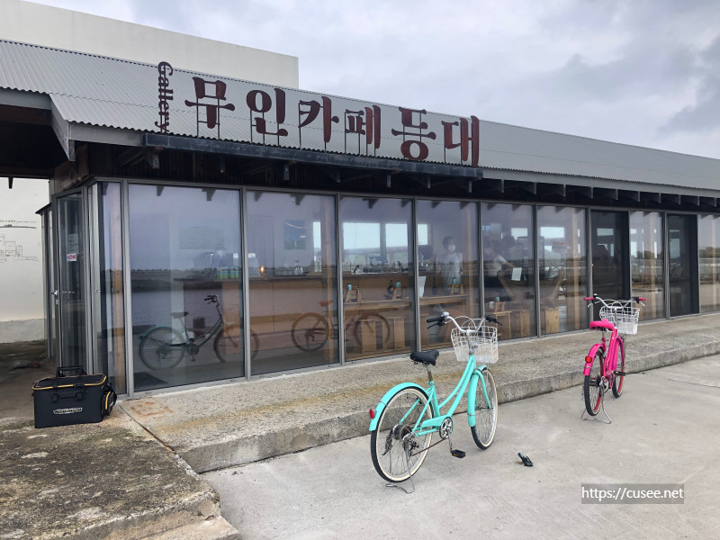 포구 바로 앞에는 무인으로 운영되는 카페가 하나 있다. 깔끔하고 포구 앞이라 전망도 좋다. 커피 종류와 주스, 맥주를 판매한다. 여기서 만든 청보리로 만든 맥주를 파는데, 캔포장인데도 한 캔에 8천 원, 4개에 3만 원씩이나 해서 구입은 포기. 사실 맛이 궁금하지 않다.