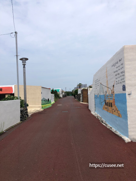 소망전망대를 지나 가파포구로 가는 길엔 교회도 하나 있고, 그 길을 따라가면 중앙길을 만날 수 있다. 일명 가파도 벽화마을길을 만나는데, 깔끔하게 포장되어 있다. 이 길을 따라 전기차가 왕래하거나 자전거가 다니기 때문일 것이다.