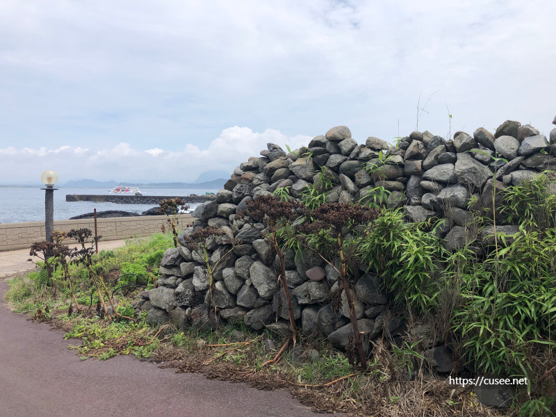 보리밭이 예쁜 길이라 붙여진 포구로 가는 올레길의 바다 쪽에는 돌담이 보이는데, '환해장성길'이라고 해서 바다로 침입하는 적을 막기 위해 축성한 것이라고 한다. 동쪽이니 아마도 왜구들이었을 거 같다. 지금은 흔적만 남아 있어서 초라해 보이지만, 섬 밖의 배에서 본다면 성처럼 보였을 것이다. 이곳에는 침입하지 말라는 무언의 경고다.