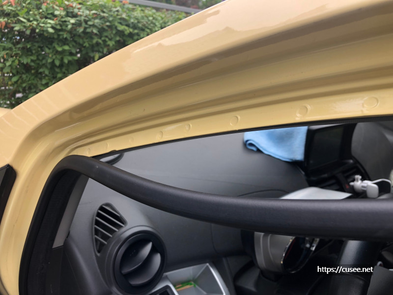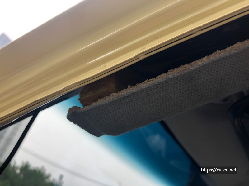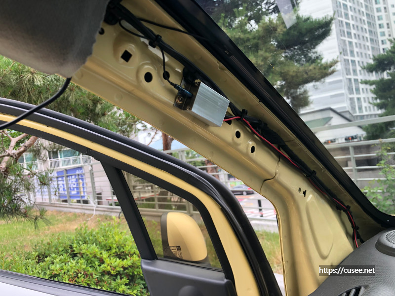 전면 유리 위쪽과 천정으로 이어지는 사이에는 공간이 있는데, 이곳으로 선들을 밀어 넣고 운전석 A-필러(Pillar)쪽으로 선을 보낸다.