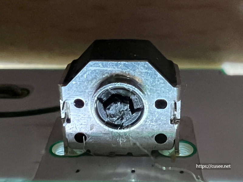 물론, 저 부위를 강력 접착제를 통해 붙여봤다. 사진으로는 그럴듯해 보이지만, 아주 약하다. 그냥 붙어만 있는 정도이지 외부의 힘을 견디거나 휠의 동작을 기판으로 전달하지 못한다.