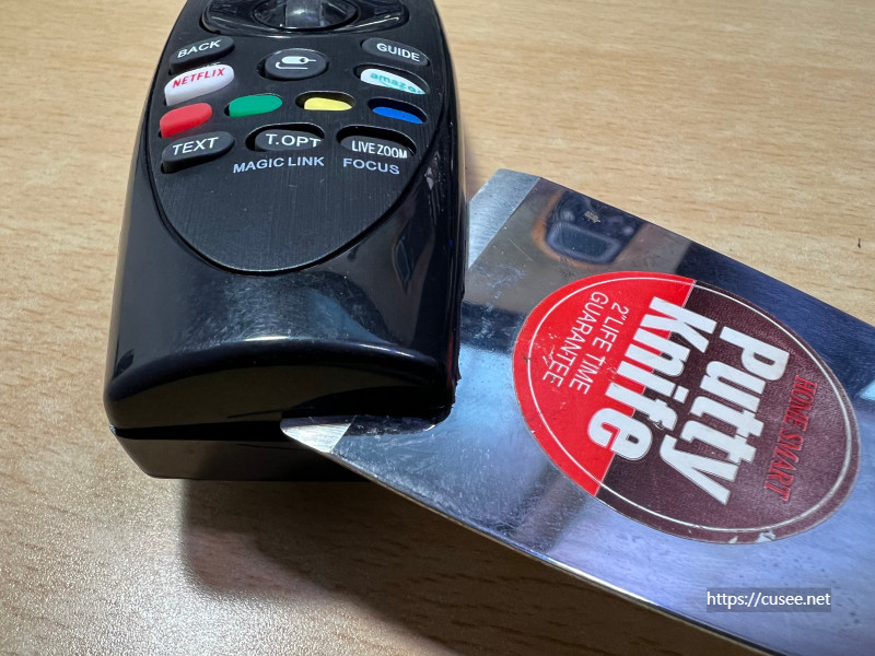 정품 분해 때와 같은 동일한 방법으로 퍼티칼을 이용해서 리모컨 하단 부위부터 분리한다.