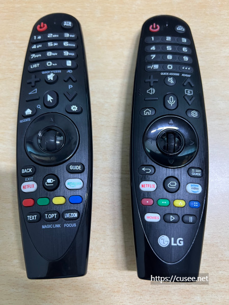 기쁜 마음에 바로 TV 앞에 달려가서 매직리모컨을 등록해 보았다. 정품과 동일하게 동작하고, 음성인식도 된다. 이론상 안 될 이유가 없는 상황이긴 하다. 인쇄된 리모컨 버튼 설명과 조금 다를 뿐 동일하게 동작한다.