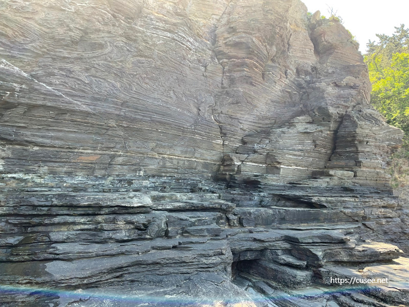 주변에서 퇴적암 또는 퇴적층을 볼 기회는 잘 없긴하다. 경남 고성, 경주 양남, 제주도 등에서 볼 수 있는 화산활동으로 생긴 지층이 국내 알려져 있긴 하지만, 변산반도와 선운산 도립공원 쪽에 이런 퇴적암 지층들이 몰려 있다. 약 7,000만 년 전 중생대 백악기에 만들어졌다고 하는데...