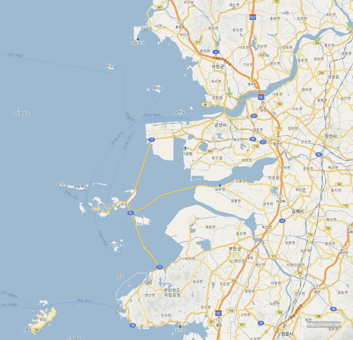 아침을 간단히 먹고 다음 여행지로 나섰는데, 이번엔 변산반도로 가기로 했다. 이번에도 빠르게 갈 수 있는 고속도로보다는 국도를 따라 내려 가기로 했다. 특히 충남 서천에서 전북 부안 변산반도로 가는 길은 군산의 새만금방조제를 따라가면 가깝기도 하고, 바닷가 풍경을 마음껏 누리며 갈 수 있어서 이 경로를 선택했다.