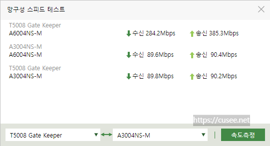 망구성 스피드 테스는 컨트롤러와 에이전트, 에이전트 간 속도 테스트 기능이다. 단, Lite Mesh 에이전트와 단말기기는 속도 측정에서 제외된다. Full Mesh(컨트롤러 포함) 기기간의 통신속도만 측정 가능하다.