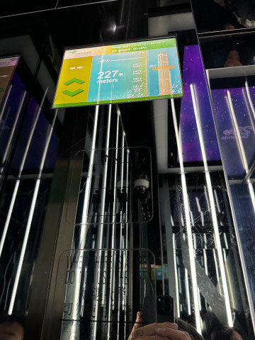 100층까지는 딱 1분(60초)이 걸리고, 올라가는 동안 모니터에는 올라가는 속도, 높이 등을 보여준다. 약간 귀가 멍해지면서 60초 후 딱 100층에 도착한다.