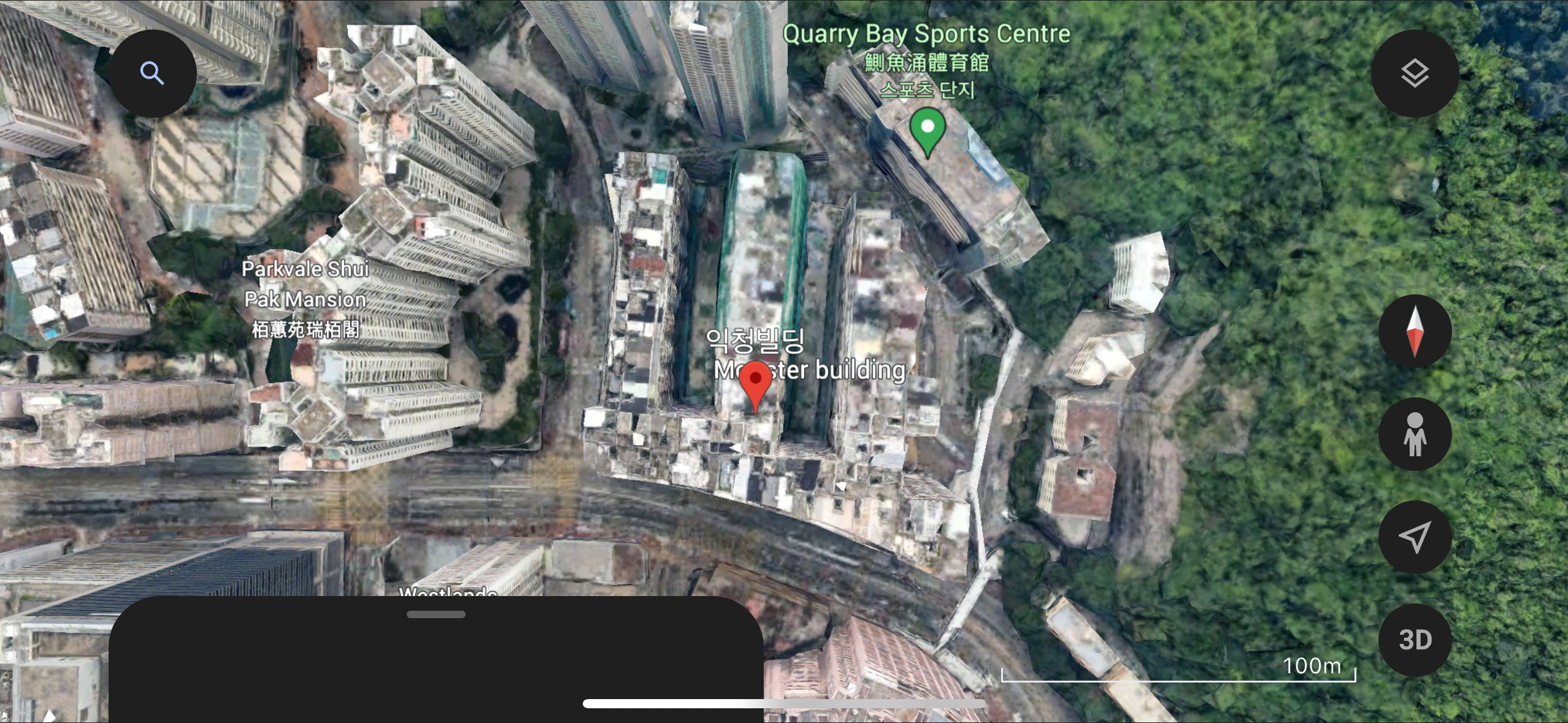 직접 가보지 않고 구조를 보려면 모바일 앱에서 Google Earth를 보면 가장 이해가 빠르다. 왼쪽의 익팟(益發)빌딩이 있는데 익청빌딩과 사잇길이 스폿으로 들어가는 길이다. 아마도 여행객들로 보이는 사람들이 우르르 들어가는 방향이면 따라 들어가면 된다. 평범한 좁은 골목이다. 아파트 주민들이나 다닐만한 좁은 통로다.
