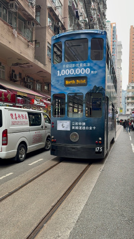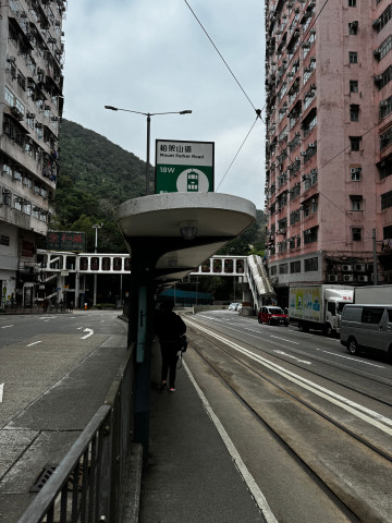 인생사진들을 찍고 나와서 이제 센트럴 쪽으로 가기 위해 큰길로 나왔다. 이젠 홍콩섬의 명물 트램을 탈 차례다. 익청빌딩 바로 앞 Mount Parker Rd. 정거장에서 기다리면 되는데, 금방 금방 도착한다.
