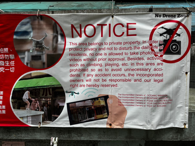 환풍구 시설에 올라가지 말라, 드론촬영하면 안 된다(드론 띄우는 것도 금지), 이로 인해서 생기는 사고는 전적으로 본인의 책임입니다 등등 이렇게 경고문이 있는데, 워낙 많은 방문객들이 이런 행동을 한 것으로 예상된다. 여긴 관광지가 아니라 실제 홍콩인들이 살고 있는 거주지역이기에 더욱 신경 써야 한다.