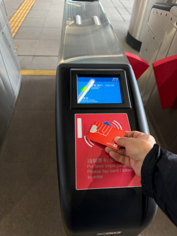 어제 구입한 마카오패스로 게이트를 통과한다. 우리나라 지하철과 시스템은 거의 동일하다. 카드를 접촉하면 게이트가 열리는 방식. 카드가 없는 사람은 역사 창구로 가서 토큰을 구입해서 토큰을 카드처럼 접촉하면 문이 열린다. 내릴 때 토큰은 반납(게이트에 넣는 구멍으로 반납)하며, 카드는 다시 접촉하면 된다.
