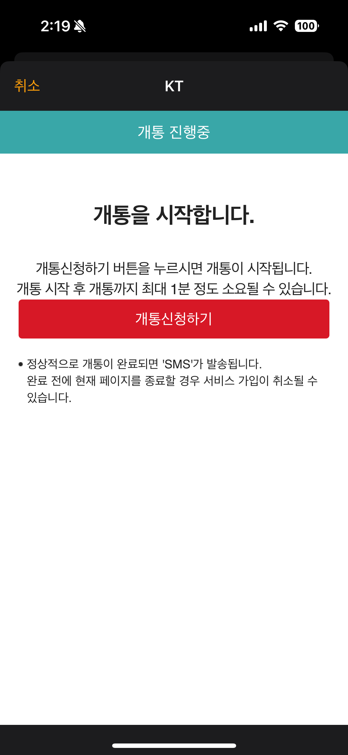 신청서 작성완료를 누르면 개통이 시작된다.