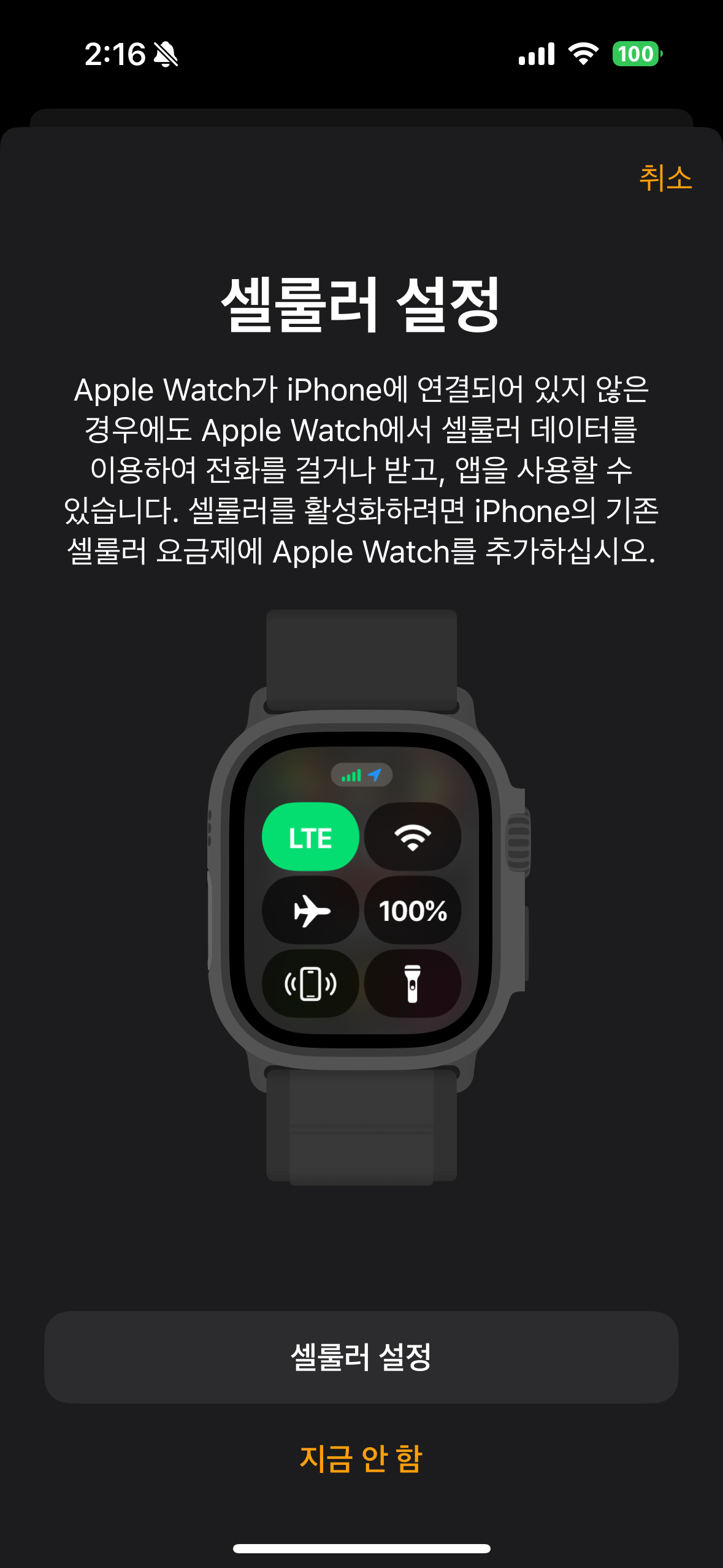 뭔가 허전하다. 개통도 빠르지만 데이터 이용은 기존 Watch 사용에 큰 영향을 주지 않는다. 다음과 같은 경우에만 LTE 셀룰러 사용 가능하다.