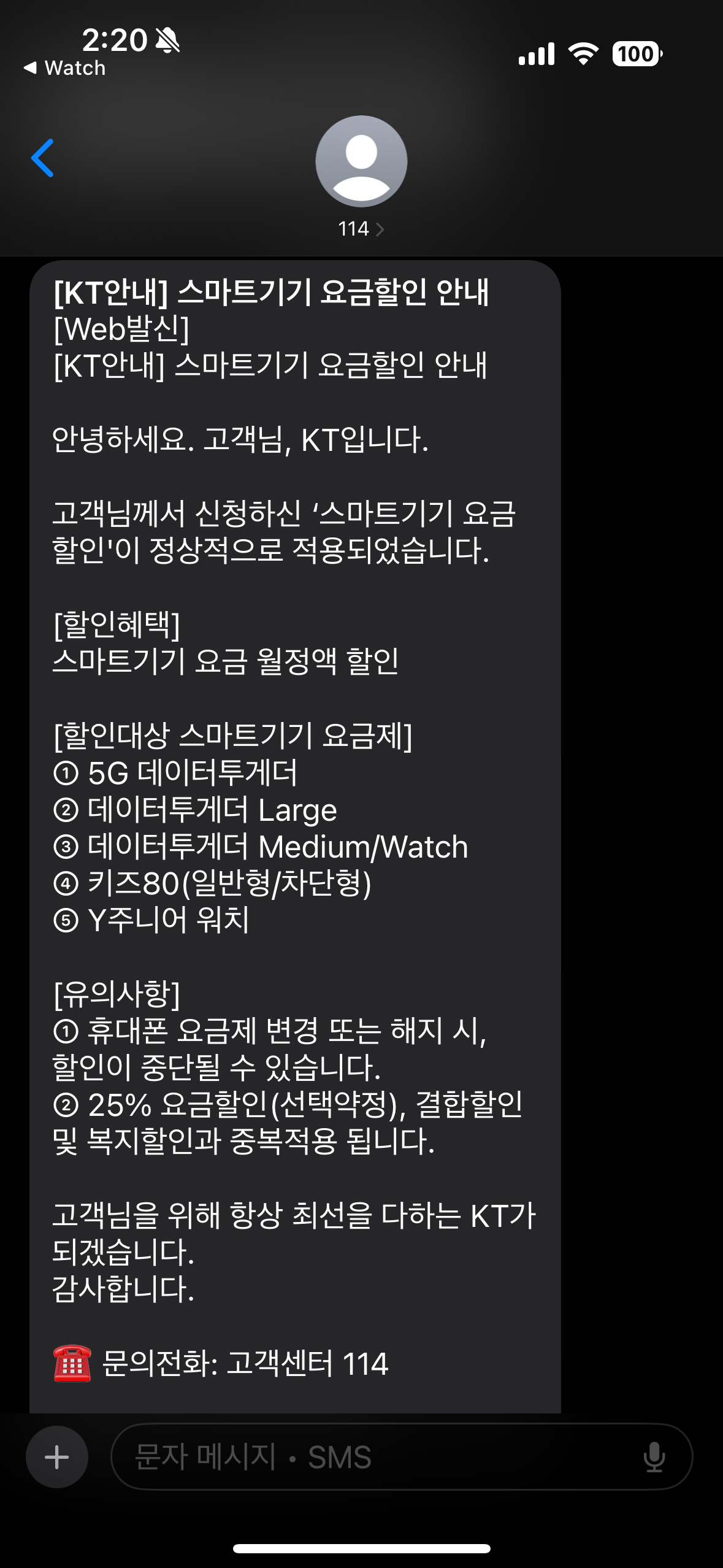 요금제 가입되어 개통되었다는 문자 메시지를 받는다.