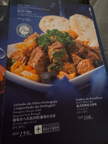 아내가 마카오를 꼭 가보자고 한 이유 중 하나는 마카오 특유의 매캐니즈(포르투갈과 중국음식의 퓨전) 음식을 맛보기 위해서였다. 첫 날은 친숙한 음식을 먹기 위해 북방관을 갔다면, 둘째날은 모험의 날로 매캐니즈를 먹어보려 했다. 그래서 가까운 타이파에서 고르기로 했고, 구글 평점이 높은 곳을 찾아갔다. 그래서 방문한 곳은 '알마'라는 포르투갈 레스토랑이었다.