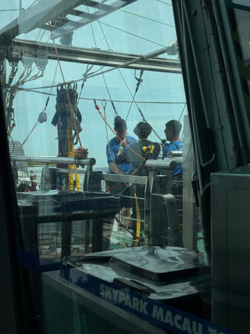 58층은 넓은 공간으로 되어 있고, 마카오를 365도 전체 전망으로 다 둘러 볼 수 있어서, 마카오반도와 주하이, 서남쪽의 헝친, 남쪽의 타이파, 멀리 콜로안까지 다 보인다.
