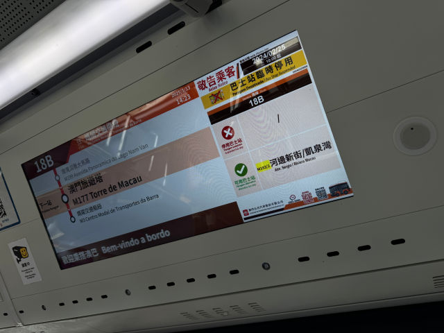 우리가 탄 곳은 M270, 목적지는 M177 Torre De Macau (마카오타워)였고, 버스로는 15분 정도 걸렸다. 마카오패스로 각각 3MOP 결제. 버스는 앞으로 타고 뒤로 내린다.