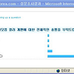 오늘 오전 10시부로 korea.com의 뉴스페이지 전체의 디자인 컬러 개편이 있었다. '웰빙과 희망의 뉴스를 전달하려는 코리아닷컴의 향후 의지를 반영한 것입니다.' 허허, 의도는 좋다. 사실 설문 자체가 안스러운 것은 오전 10시에 오픈하여 오후 3시가 다되어 가는 5시간 동안 25명의 사용자가 설문 조사에 응했다는 사실이다. 코리아닷컴, 참 힘들겠다. 대성그룹이 인수한 이후에 공격적인 서비스가 될 것이라고 호언장담했지만 도메인 이름값도 제대로 못하는 것 같다는 생각은 나 혼자만의 생각일까? CRT 브라운관 모니터에서 보았더라면 모니터가 맛이 갔나? 라고 여길법한 무시 무시한 화면이 아닌가? 어떤 느낌이 드는가? 오늘의 이슈감이다!