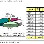 중급 기술자 구하기가 하늘의 별따기다. 작년 2005년 9월부터 10월까지 조사해서 올해 초에 발표된 '2005년도 소프트웨어기술자 임금실태 조사결과'를 보고 어느 정도 이유를 추측해 볼 수 있었다. 조사주체는 '한국소프트웨어산업협회'이며 조사대상은 소프트웨어사업자로 신고한 업체중 '1,205개사를 대상'으로 하였다. 기간은 '45일간 질문지, 방문조사, 우편조사, 이메일 조사' 등을 대상으로 '2005년 7월 중 만근한 소프트웨어 기술자(상시종업원)에게 지급된 임금'을 기준으로 작성되었다. 이들 조사업체들을 대상으로 한 등급별 인원분포 현황이다. 중급 기술자는 초급 37.6% 다음으로 많은 24.2%의 비율로 존재하고 있다. 근데 왜 이렇게 중급 기술자를 구하기 힘들까? 2004년 대비 평균 10% 정..