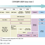 재밌는 자료를 하나 구했다. 온라인음악 산업의 가치사슬 변화에 대한 분석 자료인데 한번쯤 살펴보면 유용할 것 같다. 그림을 보면서 음악시장의 플레이어의 역할(Role)과 이익 배분에 대한 부분을 눈여겨 보자. 제작자(저작권자와 음반제작사) 50% DRM System 15% 음악 수집과 배포자 15% 마케팅과 과금업자 20% 그외 온라인음악 산업의 직접적인 수익과는 관계없는 '전송'과 '장치'가 가치사슬의 마지막에 있다. 대략 크게 4개의 그룹이, 상세하게 따지면 5개 그룹(원저자와 제작사 분리)이 가치사슬의 핵심에 있다. 음악산업에 있어서 기존의 이런 복잡한 구조는 온라인음악 산업의 발전으로 인해 유통과 마케팅이 단순화되는 경향이 있다. 그리고 아래의 비교를 보면 더 명확하게 단순화되고 수익이 집중되는 ..