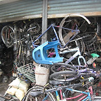 점심때 잠시 누굴 만날 일이 있어서 대구 서구 비산네거리쪽으로 갈 일이 있었다. 마침 점심시간이어서 나왔다가 한 가게앞을 지나가게 되었는데, 간판도 연락처도 없는 자전거방이었다. 자세히 보면 자전거 부품으로 가득차 있다. 흡사 창고같이 생긴 이곳은 자전거의 무덤같았다. 폐차장같이 폐자전거장(?)이었다. 밖엔 고치다 만 자전거 바퀴가 나와 있고, 입구쪽엔 각종 타이어가 걸려있다. 지나가다 타이어에 공기라도 넣으라고 펌프도 준비되어 있다. 셔터는 약간 내려져 있는데, 아마도 위에서부터 부품이 쏟아지지 않도록 막아놓은 용도로도 쓰이는듯하다. 아님, 닫을때 쉽게 작동이 되게하기 위해 저렇게 해 놓았을수도... 참, 아쉽지만 내부 촬영을 하지 못했다. 주인으로 보이는 할아버지께서 입구쪽에 앉아계시는데, 차마 사진..