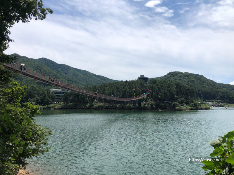 저 멀리 출렁다리와 전망대 끝부분이 보이고 그 앞쪽으로는 수상자전거들이 보인다. 한 여름이 이렇게 지나가고 가을을 맞이하고 있는 모습이다.