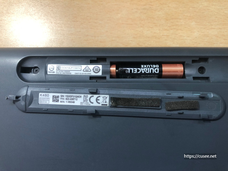 K580의 배터리 수납부와 Unifying 수신기 수납부는 하나의 커버로 만들어져 있으며, 왼쪽에는 거치공간인데, K480의 2/3 수준 길이여서 태블릿은 수직으로 세우거나 스마트폰을 거치할 수 있다. 거치 단말의 무게를 생각했을 때는 스마트폰 외에는 사실상 큰 화면의 태블릿 거치는 어렵다.