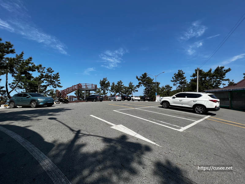 주차장에는 몇 대의 차가 있는 것으로 봐서 오전 10시 30분이 넘은 시간에도 이곳을 찾는 몇몇 무리의 여행객들이 있다는 이야기다. 사진의 정상 방향 중간에 서 있는 건물이 전망대다.