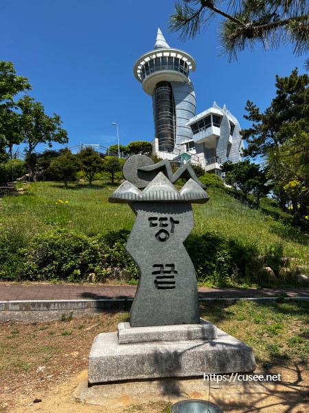 전망대의 모습은 횃불을 형상화한 것이라고 하는데, 그 아래 봉수대와 관련 있다. 원형은 아니지만, 갈두산엔 봉수대가 있었고, 조선초부터 설치되어 있었다는 기록이 있다 한다. 그러니 전망대는 갈두산 봉수대를 형상화한 것이라 추측 가능하다.