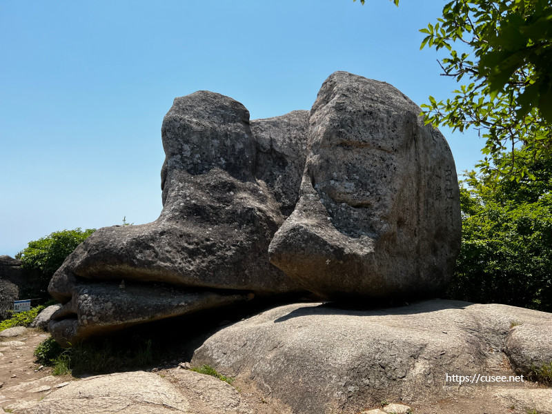 금산 정상은 보리암에서 가깝고 힘들지 않게 오를 수 있어서 가볼만하다. 작은 오솔길을 따라 올라가면 정상을 바로 만날 수 있는데, 큰 바위 덩어리가 있어서 또 다른 느낌을 준다.