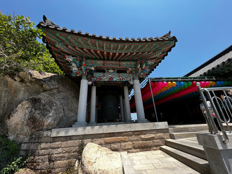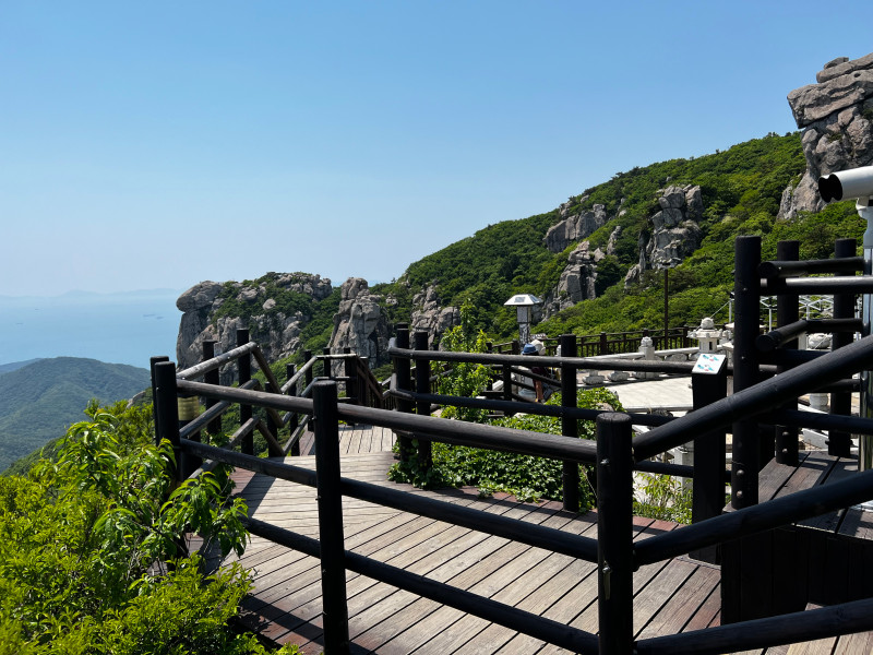보리암을 방문한 5.17(화) 낮은 먼지가 조금 끼긴 했지만 날은 맑아서 바다 풍광이 아주 좋았다. 특히 사찰 건물과 어우러져 바라보는 남해는 아름답고 푸르렀다.