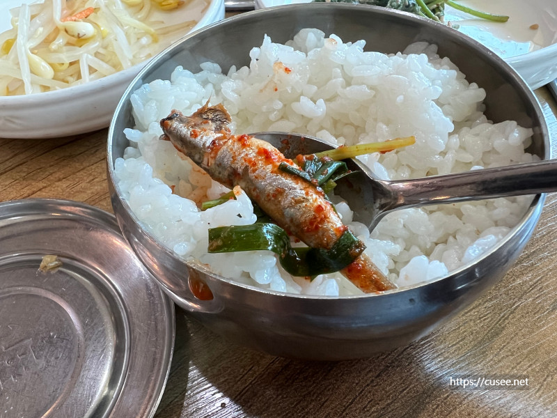 난 어릴적부터 멸치를 좋아하지 않아서 잘 먹지 않는데, 더군다나 이렇게 큰 멸치를 찌개처럼 만들어 쌈을 싸 먹는다니 내키지는 않았다. 하지만, 아내의 설득 끝에 처음으로 먹어봤는데, 비린내는 거의 나지 않았다. 비주얼을 따지면서 음식 가리는 내게 조금은 먹기 싫은 모양새였지만 맛은 좋았다.