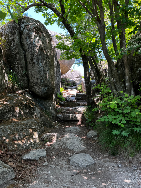 이제 본격 보리암의 입구로 다가간다. 계단을 따라 내려가면 사찰 건물이 보이기 시작한다.
