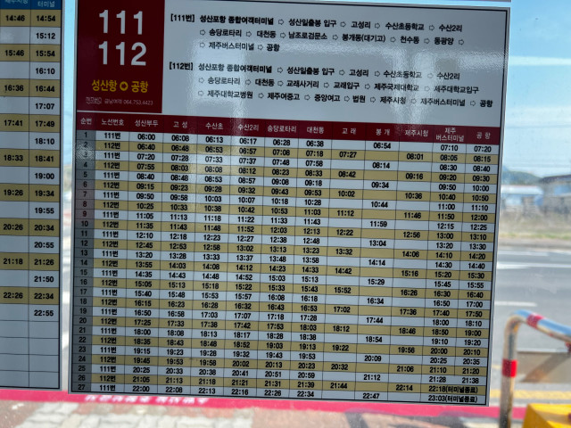 다시 정류장으로 갔고, 시간표를 보면서 차를 기다렸다. 이번에도 111번을 타면 좋겠다 생각하고 있었는데, 112번이 도착해서 쉬고 있는 모습이 보였다. 시간을 보니 112번은 한참 있다 출발하는 것 같은데... 하고 생각 중이었는데, 갑자기 기사님이 112번 번호판을 111번으로 바꾼다. 아!