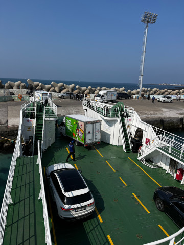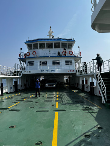 성산항 출발 때처럼 차들도 한대 두대씩 들어오는데, 뒷걸음 쳐서 들어온다. 승무원의 안내에 따라 먼저 들어온 차는 안쪽으로 들어간다.