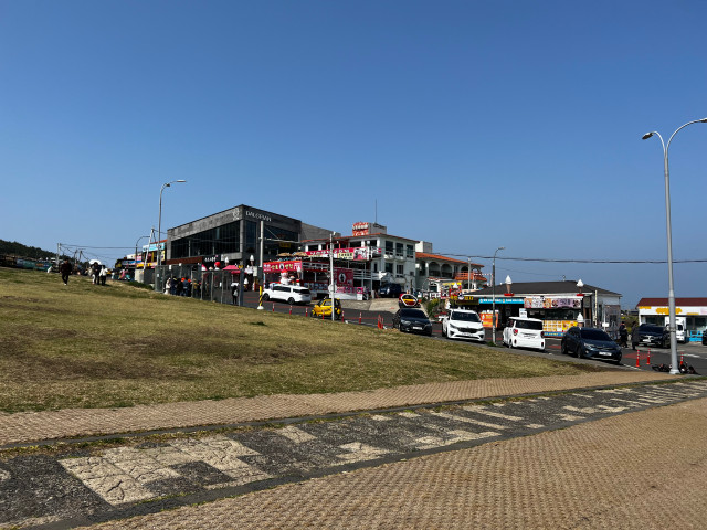 검멀레해변의 도로가는 사람들과 차들로 가득하다. 관광지의 느낌이 물씬. 동남아 관광객들이 많이 보이고, 중국어를 쓰는 사람들이 종종 보이는 것으로 봐서 아마도 대만인들 같다.