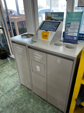 스타벅스에서만 봤던 해피해빗컵 반납기가 식당에도 설치되어 있다. '다회용 컵 반납기'라고 되어 있는데, 해빗컵을 반납할 수 있는 기계다.