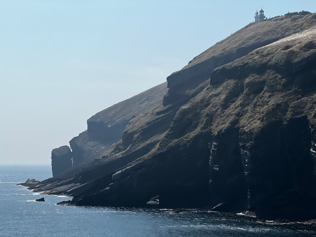 역시 바다 가운데서 봐야 우도가 어찌 생겼는지 알 수 있다. 위에서 봐야 소가 누워 있는 모습이라도 알아볼텐데, 옆에서 보면 그냥 오른쪽 높은 곳에서 왼쪽 낮은 곳으로 평평하게 펼쳐진 작은 섬모양이다.