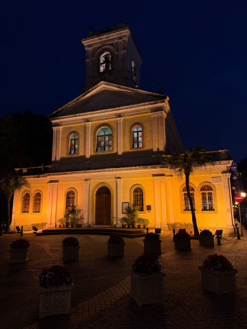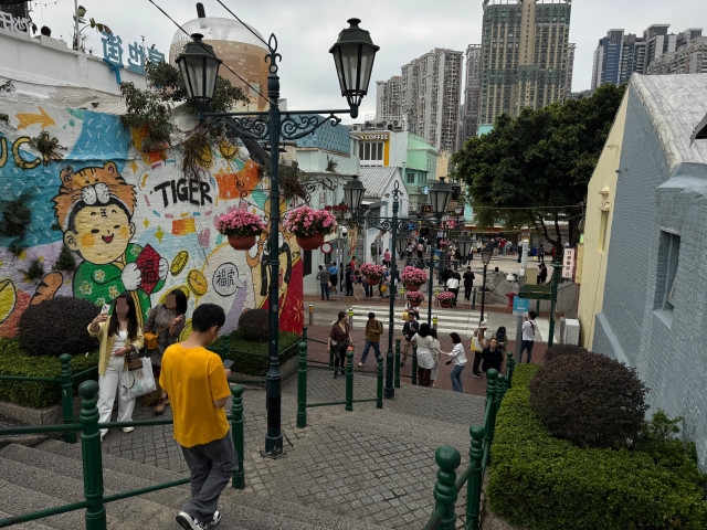 주택박물관에서 타이파 음식거리로 넘어가는 작은 언덕엔 카르멜 성모 성당이 있다. 호텔로 돌아갈 때는 다시 지나가게 되었는데, 그때는 성당 주변으로 배경조명이 켜져 더 운치있었다. 성당과 작은 초등학교를 지나면 어렵지 않게 바로 타이파 음식거리와 쿤하거리를 만날 수 있다. 음식거리로 가려면 계단이 하나 있는데, 여기서 사진을 찍는 여행객들이 많았고, 한국어 대화도 종종 들렸다. 물론 외국인들이 훨씬 더 많았다.