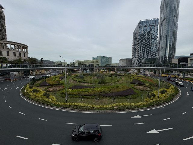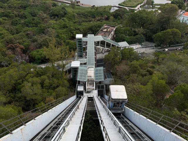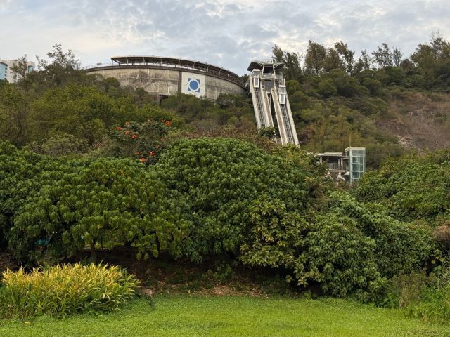대담산 남서쪽은 공원으로 꾸며져 있고, 타이파 그란데 전망대(Taipa Grande Viewing Platform)가 있다고 해서 우린 먼저 그곳으로 걸어갔다. 파리지앵호텔에서는 걸어서 약 20분 정도가 걸린 것 같다. 그 중 10분은 베네시안호텔 앞 로터리까지 걸린 시간이다. 구글맵이 알려주듯 대담산전망대공원 입구(북쪽의 도심방향)가 아닌 생태습지를 마주하고 있는 도로에 산중턱 전망대로 오르는 경사리프트(엘리베이터)가 설치되어 있다.