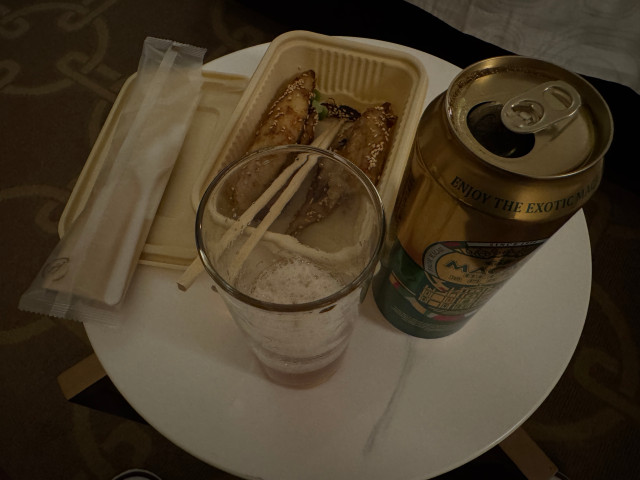 즐겁게 식사를 하고 호텔로 걸어 돌아오니 9시가 다 되었고, 가져온 가지튀김과 마카오맥주를 같이 2차를 했다. 여행의 피곤함이 갑자기 밀려와서 여행 첫 날은 이렇게 마무리 되었다. 10시 경 눈을 감았는데, 그래... 마카오는 한국시간 11시지... 하면서 피곤한 이유 하나를 더 발견했다.