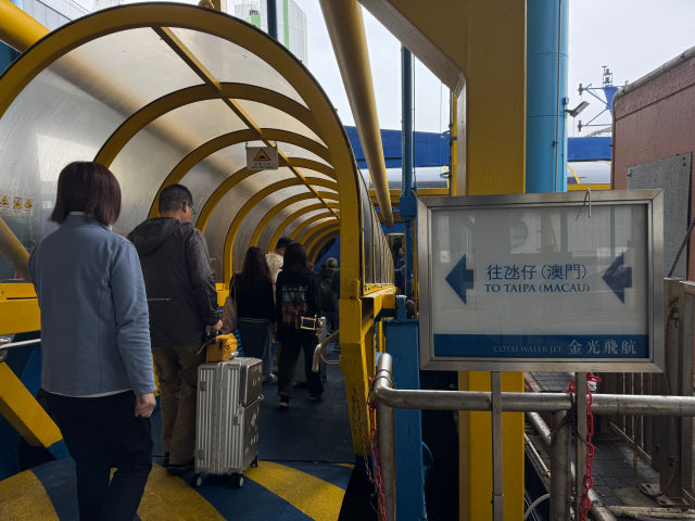 터미널은 공항과 비슷한 구조라, 출국(마카오)하려면 2층으로 올라가야 하고, 매표창구가 있다. 미리 예약한 고객은 창구에서 표를 바꿀 필요 없이 탑승 게이트 쪽으로 가면 거기서 QR 스캔 후 탑승권으로 바꿔준다. 이때 좌석배정도 받는다. 이후 간단한 출국심사를 한다. 따라서, 홍콩으로 가기 위해서는 반드시 입국 시 받은 사증과 함께 여권이 필요하다.