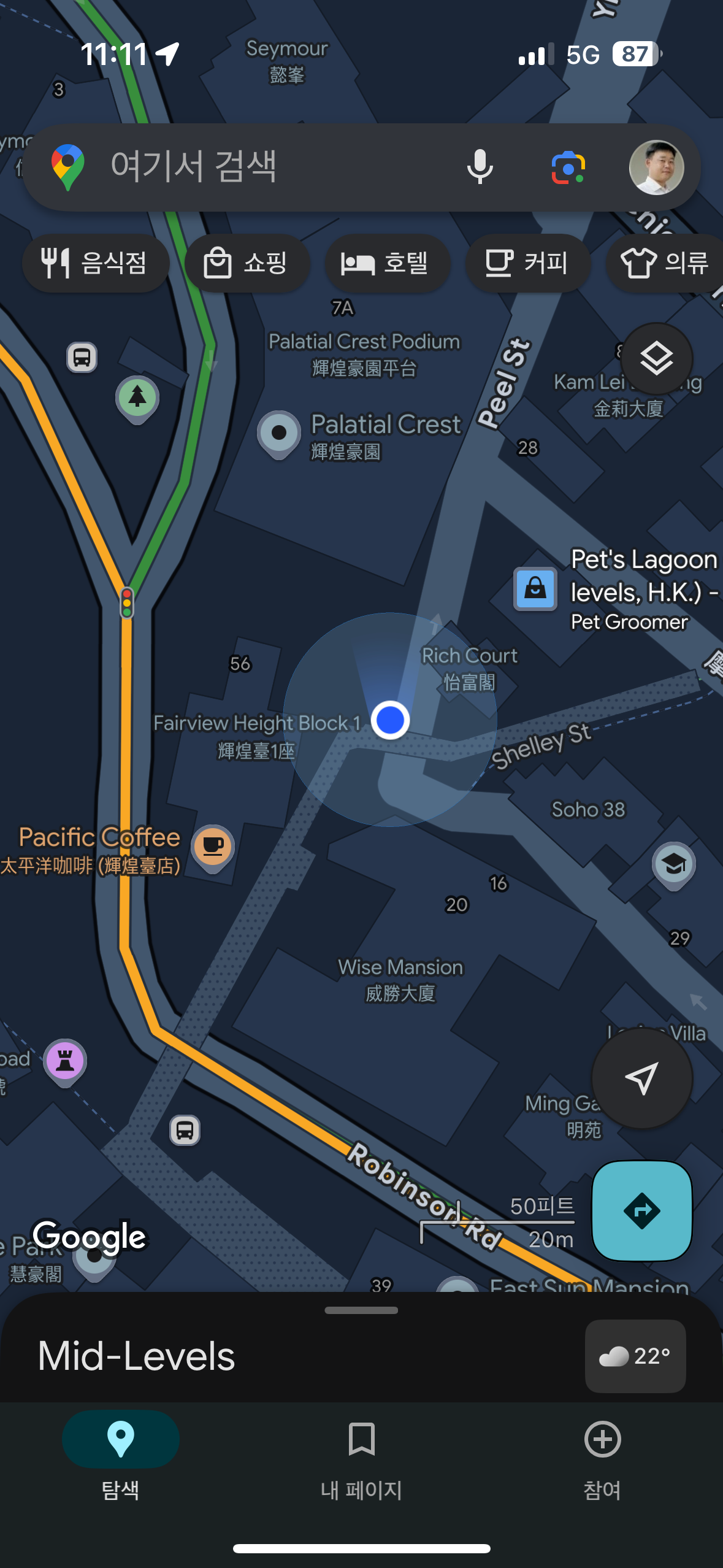 노스포인트에서 23번 버스를 타고 목적지를 빅토리아피크로 하니 홍콩공원 정거장에서 내리라고 한다. 가는 동안 구글맵으로 위치를 계속 파악하면서 갔다. 운 좋게 2층 제일 앞자리에 앉아 코