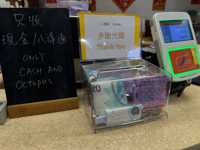 카운터 앞에 쓰여 있는 걸 못 본 거다. Only Cash and Octopus! 여긴 현금 아니면 옥토퍼스만 됨! 팁 주셔도 됨!
