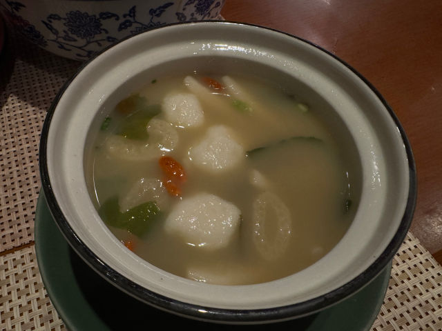 자리에는 이미 세팅이 되어 있는데, 그릇과 수저 그리고 차와 플라스틱 그릇이 있다. 어디서 주워들은 건 있기도 하고, 전에 왔을 때도 비슷한 상황이 있어서, 뜨거운 찻물에 식기를 씻었는데, 왜 거기에 다시 차포트를 넣었는지 지금도 이해가 안 된다. 이건 실수다. 그냥 플라스틱통은 찻물로 식기를 씻고 버리는 물만 담그고, 포트는 그냥 테이블에 올려두고 마시면 된다. 남들은 다 그렇게 하고 있었다...