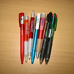 최근 한달안에 코엑스에서 열리는 전시회를 세군데나 다녀왔다. 전시회라는 것은 새로운 것을 접할 좋은 기회이자 시장 정보를 획득할 수 있어서 내 경우는 자주 참석을 하려 노력을 한다. 몇년전까지만 해도 전시장을 다녀오면 종이 가방 천지였다. 각종 기업의 로고가 새겨진 가방이 천지였으나 최근 다녀온 전시회 기념품은 모두 볼펜이다. 한 몇년치 볼펜은 사지 않아도 될만큼 많은 볼펜을 받을 수 있다. 실제 이것보다 훨씬 많은 볼펜을 받았다. 볼펜도 유행이 있나보다. 몸체가 퉁퉁하면서 필기감이 좋은 볼펜과 3색 또는 4색이 나오는 볼펜이 유행이다. 색상과 볼펜에 인쇄된 기업이름만 다를 뿐 제조사도 동일하다. 이런 기념품들은 전문적으로 공급하는 회사들에 의해 만들어지는데, 최근 전시회엔 볼펜이 유난히 유행인가 보다...